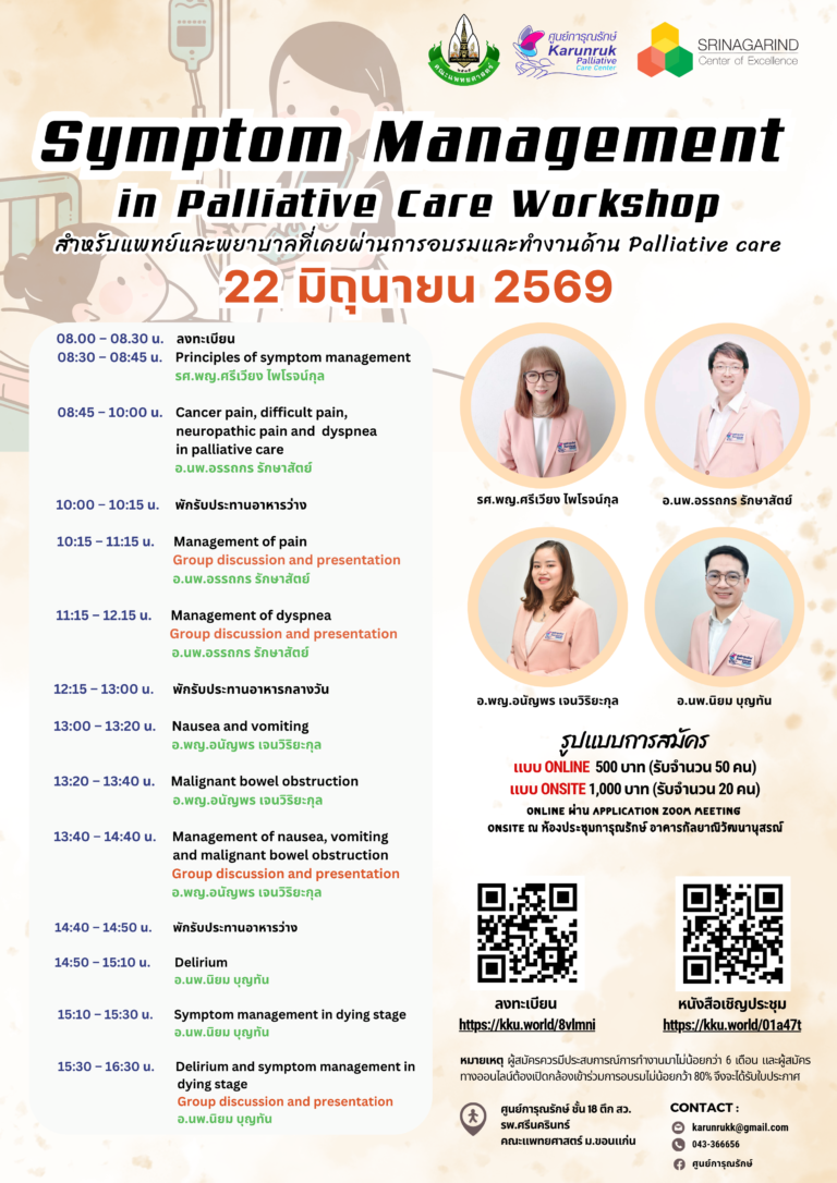 Symptom Management in Palliative Care Workshop วันที่ 22 มิถุนายน 2569