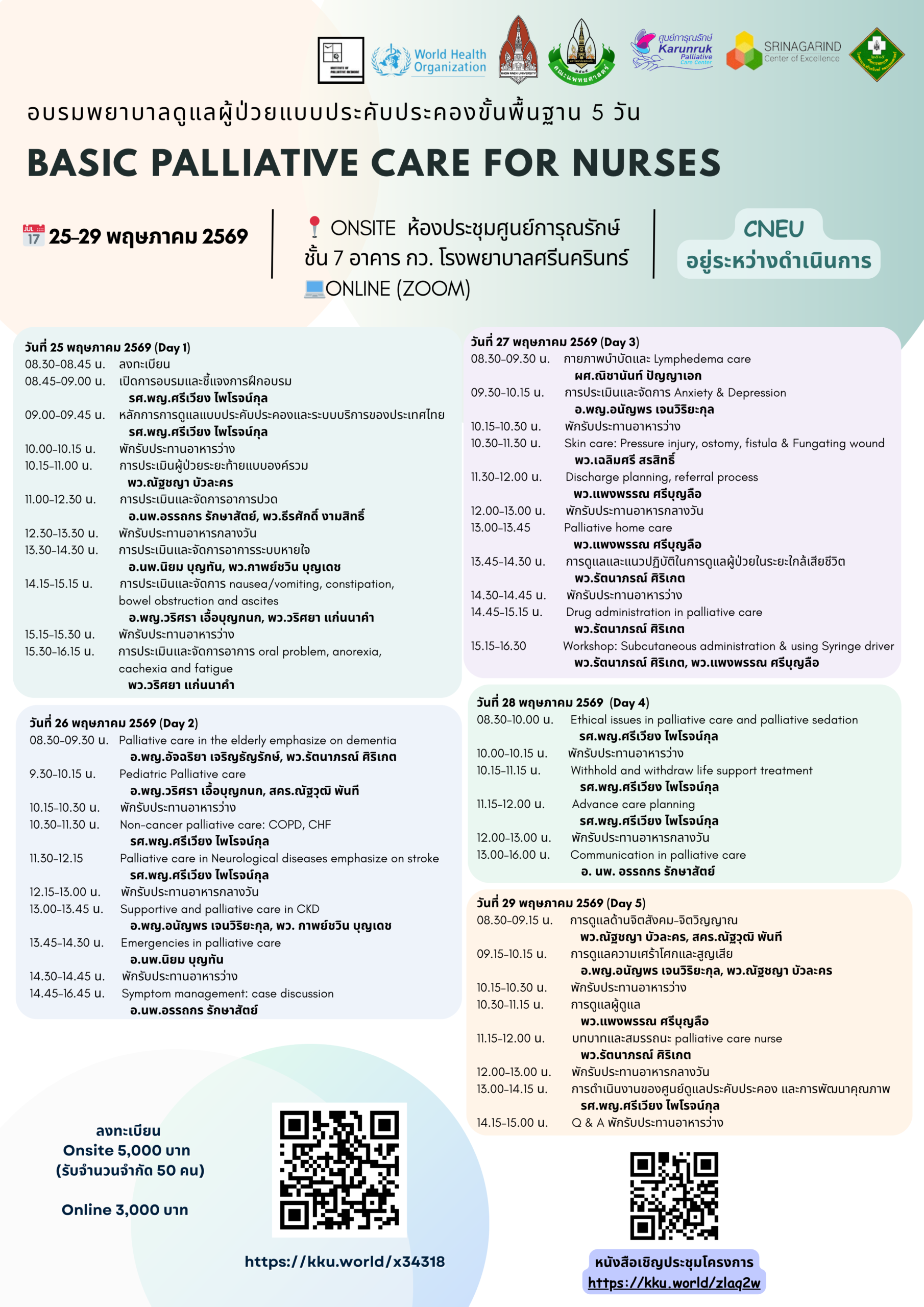 การอบรมพยาบาลดูแลผู้ป่วยระยะท้ายแบบประคับประคอง ระยะเวลา 5 วัน