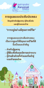 แนะนำศูนย์ ภาษาไทย แนะนำศูนย์ภาษาอังกฤษ การดูแลด้านโภชนการในผู้ป่วยประคับประคอง การดูแลแบบประคับประคอง การดูแลผู้ป่วยระยะท้ายที่บ้าน การดูแลผู้ป่วยระยะท้ายใกล้เสียชีวิต คำแนะนำสำหรับญาติหลังผู้ป่วยเสียชีวิต ก้าวพ้นความเศร้าโศก เสียใจ การดูแลบุคคลที่ท่านรักในหอผู้ป่วยระยะวิกฤติ การรักษาด้วยยามอร์ฟีน Approximate Dose Conversion table การรักษาประคับประคองในผู้ป่วยโรคไตเรื้อรังระยะที่ 5 การดูแลแบบประคับประคอง สำหรับผู้สูงอายุ ผู้ต้องพึ่งพิงและผู้ป่วยระยะท้าย แผ่นพับแนะนำคลินิกประคับประคอง ในผู้ป่วยโรคไตเรื้อรังระยะที่ 5 การวางแผนดูแลล่วงหน้า สมุดบันทึกแผนการดูแลสุขภาพส่วนบุคคล แผ่นพับการวางแผนการดูแลสุขภาพล่วงหน้า จำนวนผู้เข้าชม: 3,554